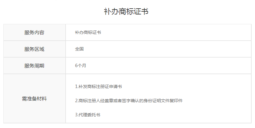 商标证书补办