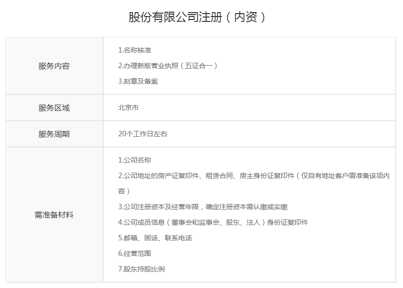 股份有限公司注册(内资)