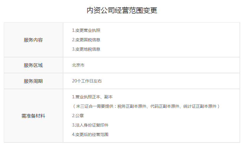 内资公司经营范围变更