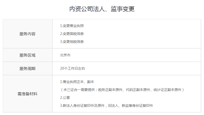 内资公司法人、监事变更