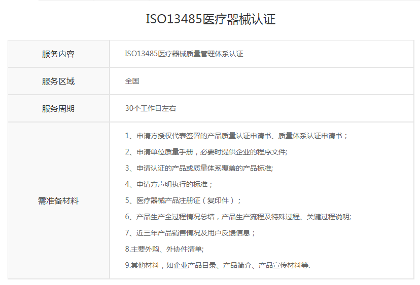 ISO13485医疗器械质量管理体系认证