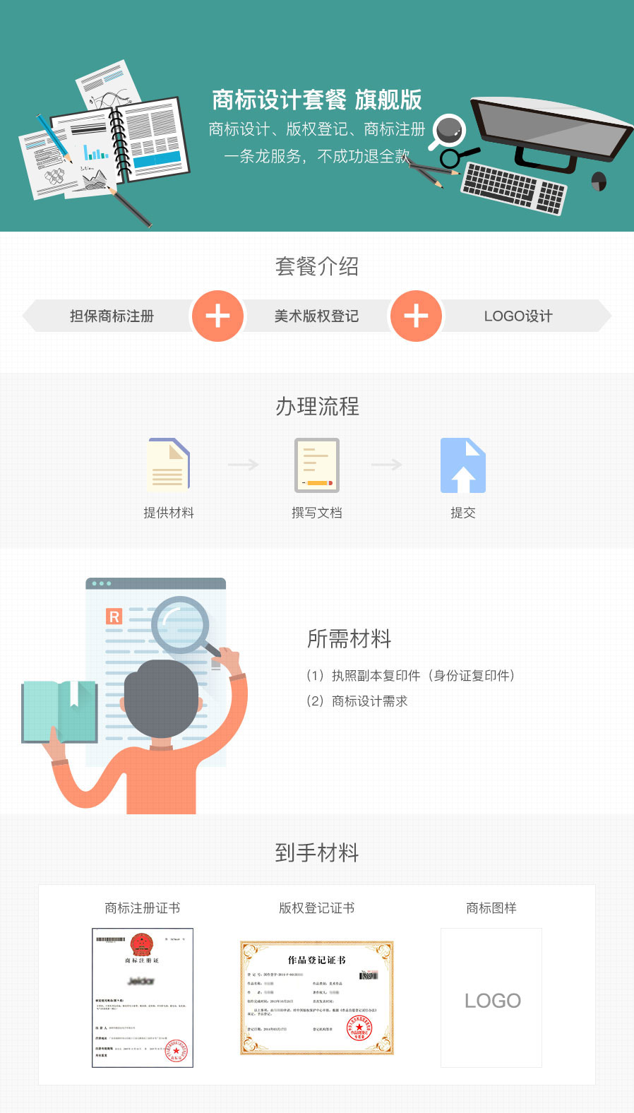 商标设计、版权登记、商标注册一条龙服务,不成功退全款